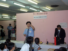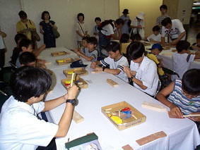 | 本年の科学の祭典は我々地球文めい堂・立教大学S.S.A.にとって初めての「工作教室」でした。 一昨年までの「車いす体験乗車」などの体験型から昨年の「クロマトグラフィー」を経て、 「製作型」のブース運営となりました。今後も子供達に喜ばれる実験を創造して行きたいと 考えておりますので、宜しく御願いします。 |