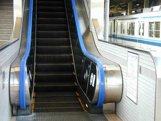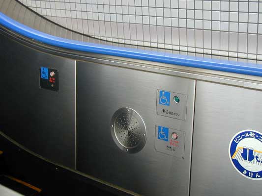 ホームから改札口を結ぶエレベーターは設置されていなかったが、上下ホームともに車いす対応のエスカレーターを設置していた。