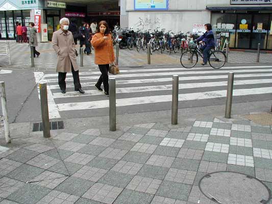 駅入り口付近に車よけのためのポールが設置されているポールとポールの感覚が若干狭く感じ、車いすでの通行には不便のように感じた。実際に走行する調査もやはり必要に思う。