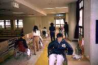 - これは、車いすの活動の番外編と言えます。今までは科学の祭典の下でしか活動していなかったので、小学生以外の方に体験してもらうのが難しい状態だったので、高校生や大人の方に乗ってもらうのが目的で私が計画しました。又、このときは今までの「外」の障害物のシュミレーションではなく、「内」(ドア・物を運ぶ)のシミュレーションを実験的に行いました。