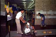 - 私が初めて参加したイベントで、この頃は棒を置いたり板に棒を挟んで坂道にしただけの御粗末なものでした。乗ってみて気づいたこと・感想はラベルに書いてもらっていました。参加者は4人だけで、今考えるとかなり無理があったように思います。当時は他に松葉づえを使うという案があったりしたのですが、この回のみで消滅してしまいました。